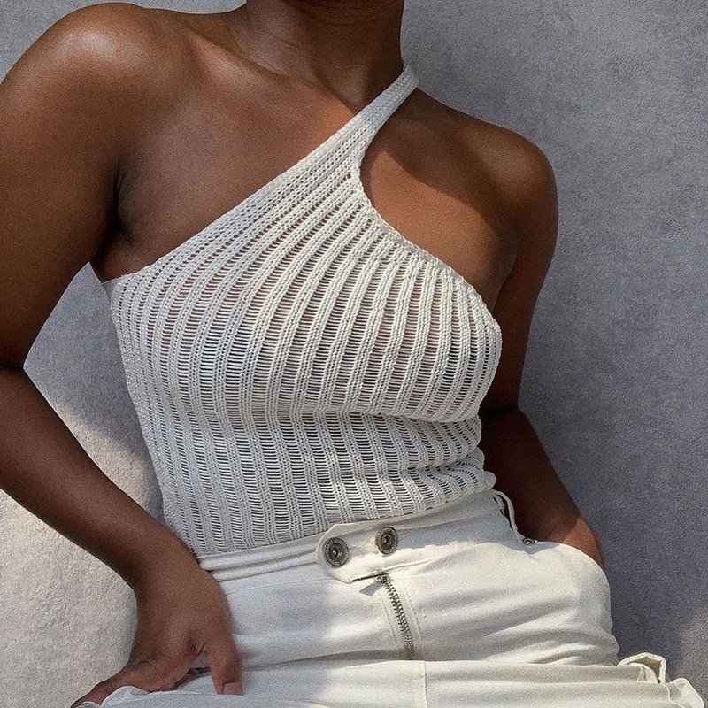 Donna posteriore della maglietta della blusa del cuore della breve di stile della lana spalla obliqua del tessuto